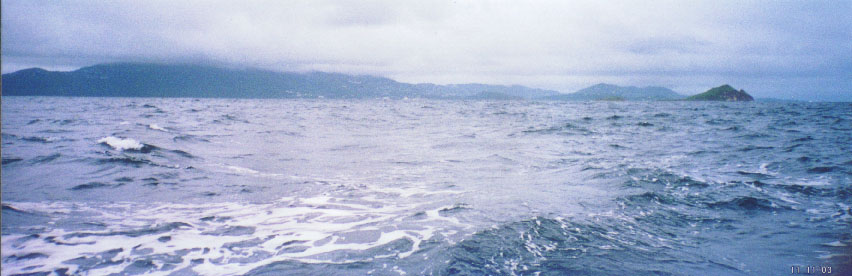 St. Thomas behind us, we sail out to an 8 foot sea (wave height).